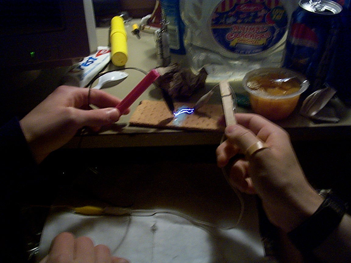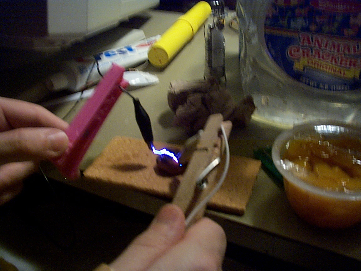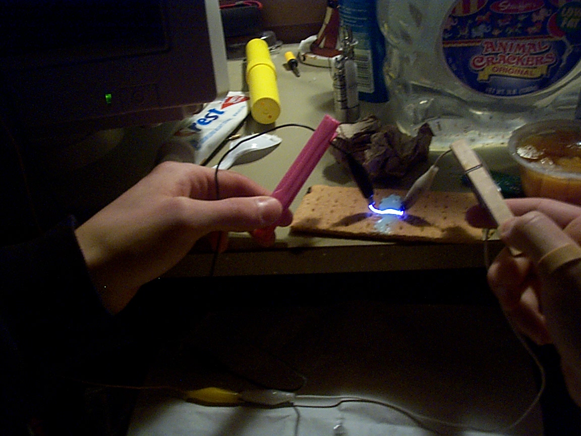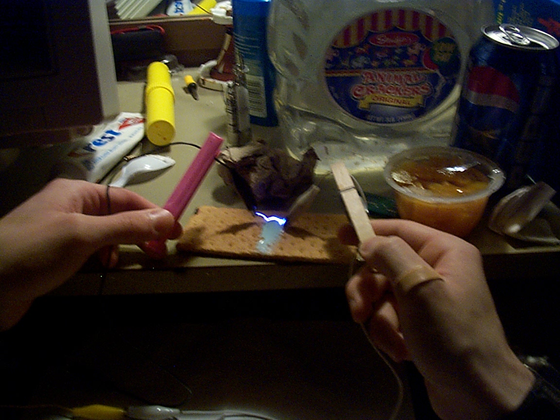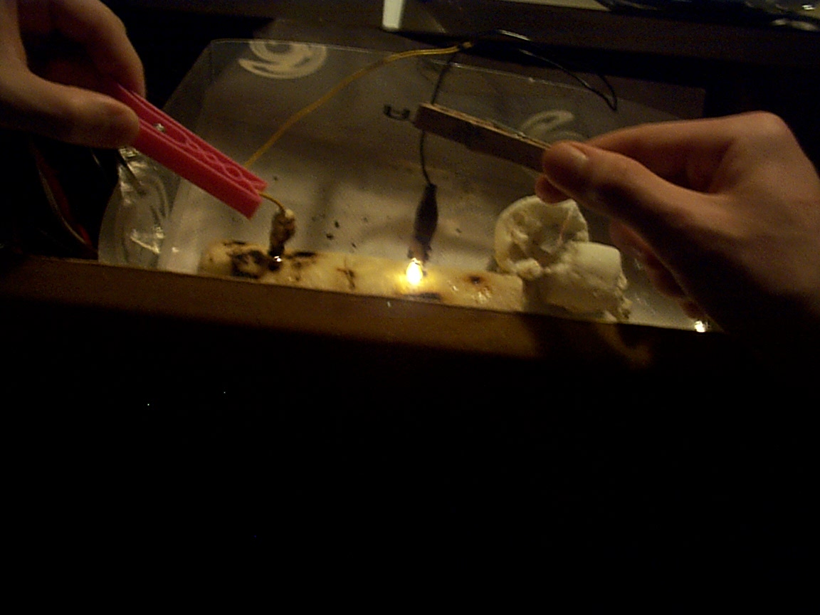Marshmellows are excellent for turning electricity into flame on any other object