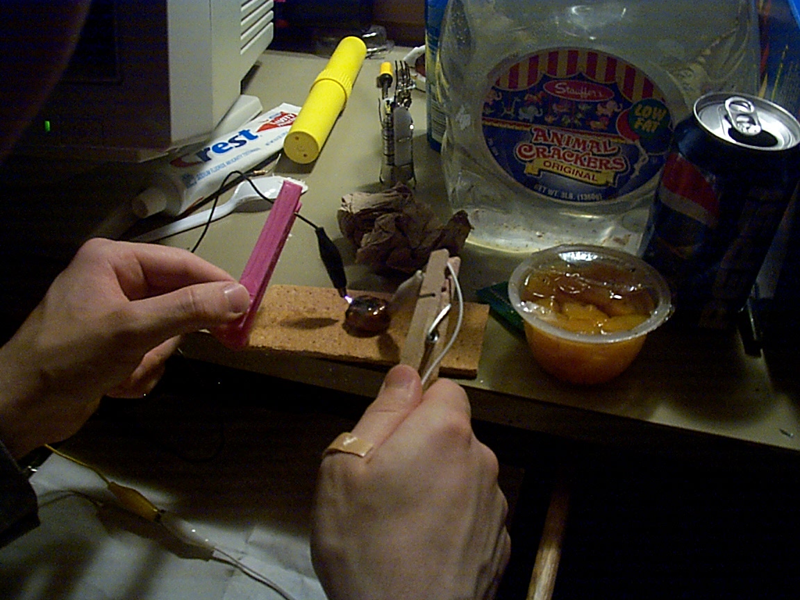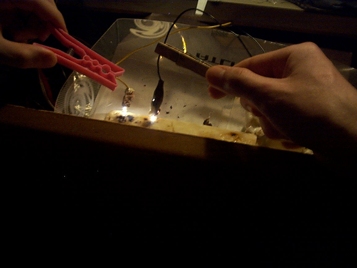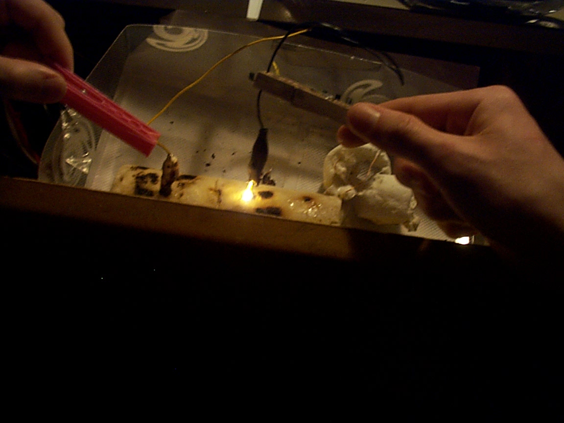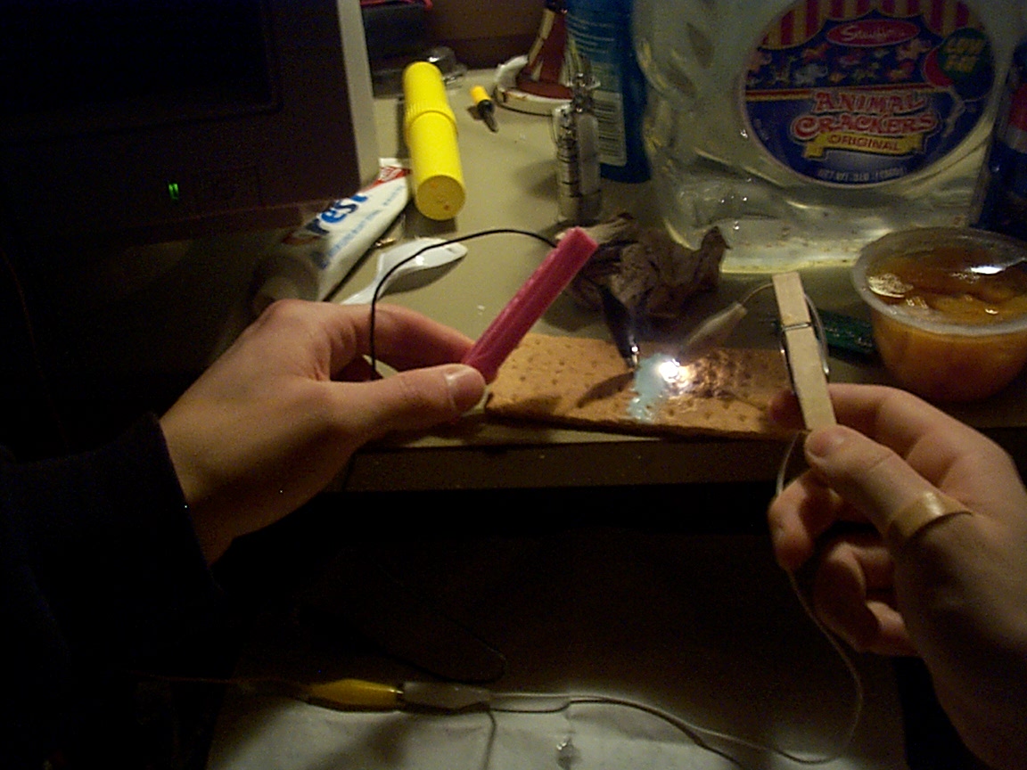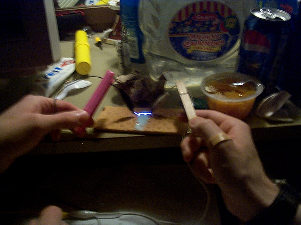 Marshmellows are excellent for turning electricity into flame on any other object