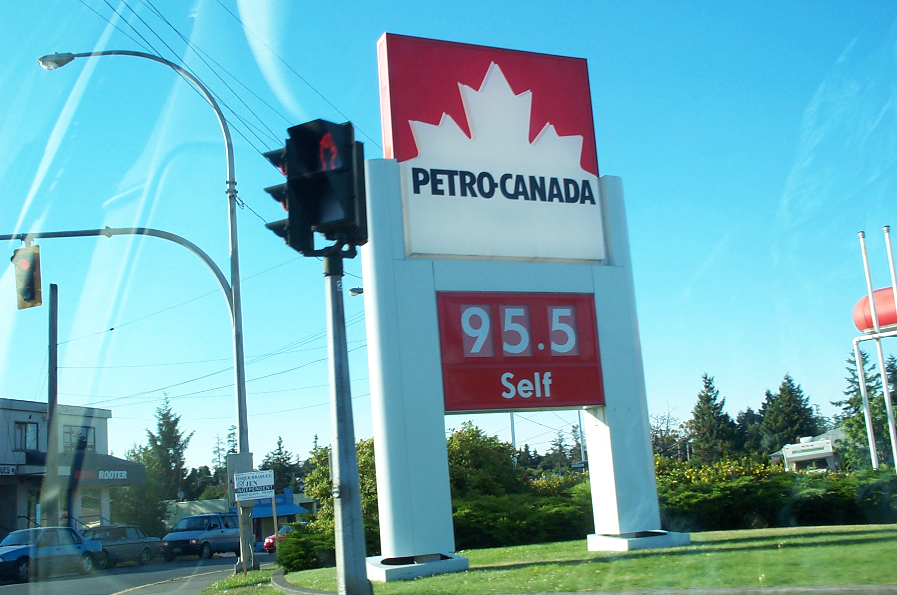 4 litres in a gallon, that is $3.82 a gallon canadian, or $2.80 US
